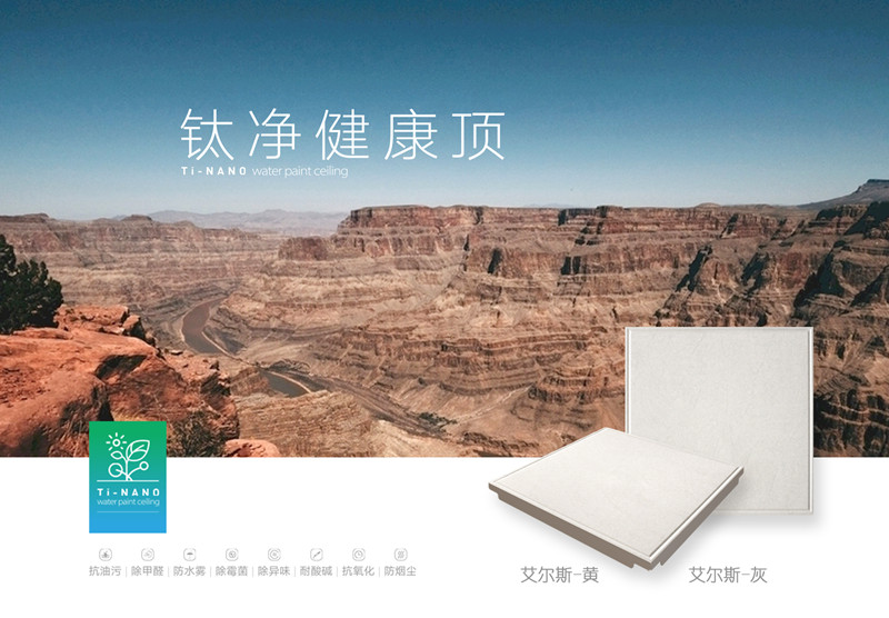 歐美鈦凈健康頂是以水性漆的原材料特性、納米技術(shù)的防護(hù)功效和光觸媒技術(shù)的分解功效,三重功效的疊加,使得我們的吊頂具有抗油污、除甲醛、防水霧、除霉菌、除異味、耐酸堿、抗氧化、防煙塵等作用。