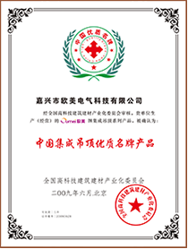 2008年8月,歐美整合歐美技術、品牌優勢資源,成立嘉興歐美電氣科技有限公司,正式進入集成吊頂行業。歐美電氣依靠歐美廚衛專家前衛設計,傳承歐美廚衛行業的技術精髓,結合中國家庭的審美觀念,把自由與個性、時尚與尊貴、奢華與美學融合在一起,實現了取暖、照明、換氣、吊頂一體化的廚衛吊頂整體解決方案,全力打造集成吊頂時尚品牌。