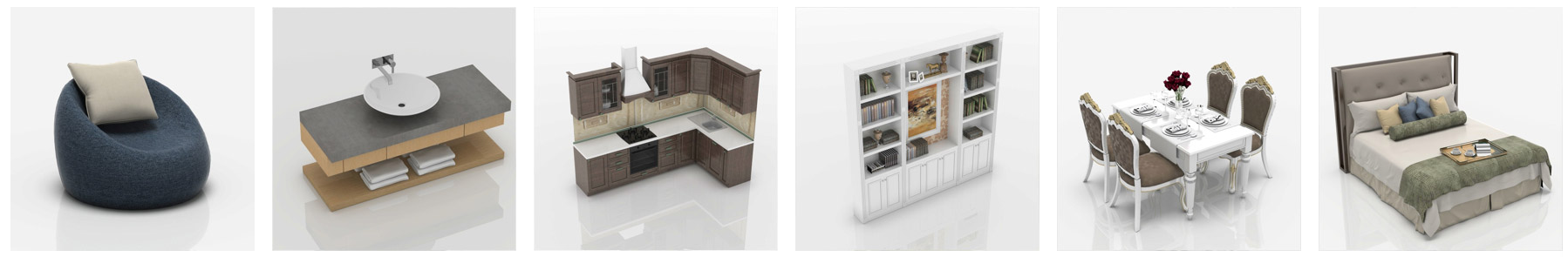 數(shù)萬套樣板間,海量真實3D模型,沙發(fā)、桌椅、門窗、燈具等